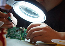 Сотрудник сервис центра исполняет восстановление: заменяет неисправную комплектующую работоспособной заводской частью
